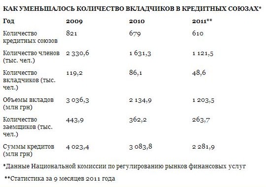 Проблемы с кредитными союзами и претензии к ним вкладчиков и заемщиков в Украине возникают регулярно. Не было еще года, чтобы не лопнула пара-тройка коопераций, оставив тысячи украинцев ни с чем. Правда, раньше эти проблемы не получали широкой огласки, поскольку союзы вкладчиков и заемщиков, как правило, действовали в областном или региональном масштабе. Ситуацию обострил мировой финансовый кризис: с 2008 года численность таких союзов сократилась на четверть, и сегодня в Украине их чуть более шестисот. При этом резко выросло и количество вкладчиков, которые одномоментно потеряли все свои деньги. Бывали случаи, когда вся процедура банкротства организации проходила за один день, и люди, положив на счет деньги утром, тем же вечером узнавали, что у них нет ни копейки.
