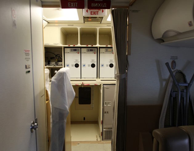 Кухонний відсік літака стандартний для літаків сімейства Airbus. Він не передбачає можливості приготування на борту їжі – йдеться лише про її зберігання в холодильниках та розігрівання. Меню аналогічне харчовим наборам бізнес-класу, які використовуються на звичайних комерційних рейсах.
