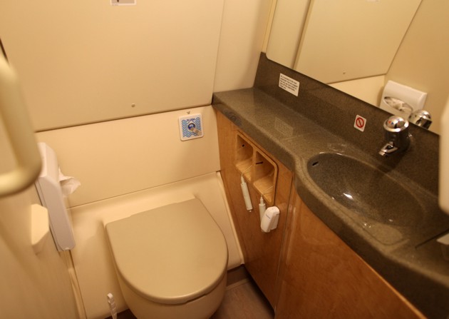 У літаку немає скляних дзеркал – їх функцію за нормами авіабезпеки виконують відполіровані до дзеркального блиску тонкі металеві пластини. Це – одна з міжнародних вимог з авіабезпеки.