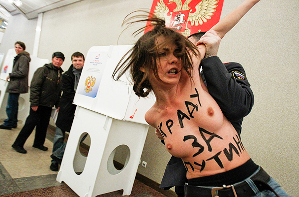 В понедельник стало известно, что одной из активисток украинского движения FEMEN Анне Деде могут запретить въезд в Россию на пять лет. Девушка была арестована накануне во время протеста, устроенного на избирательном участке, где голосовал кандидат в президенты Владимир Путин со своей супругой.