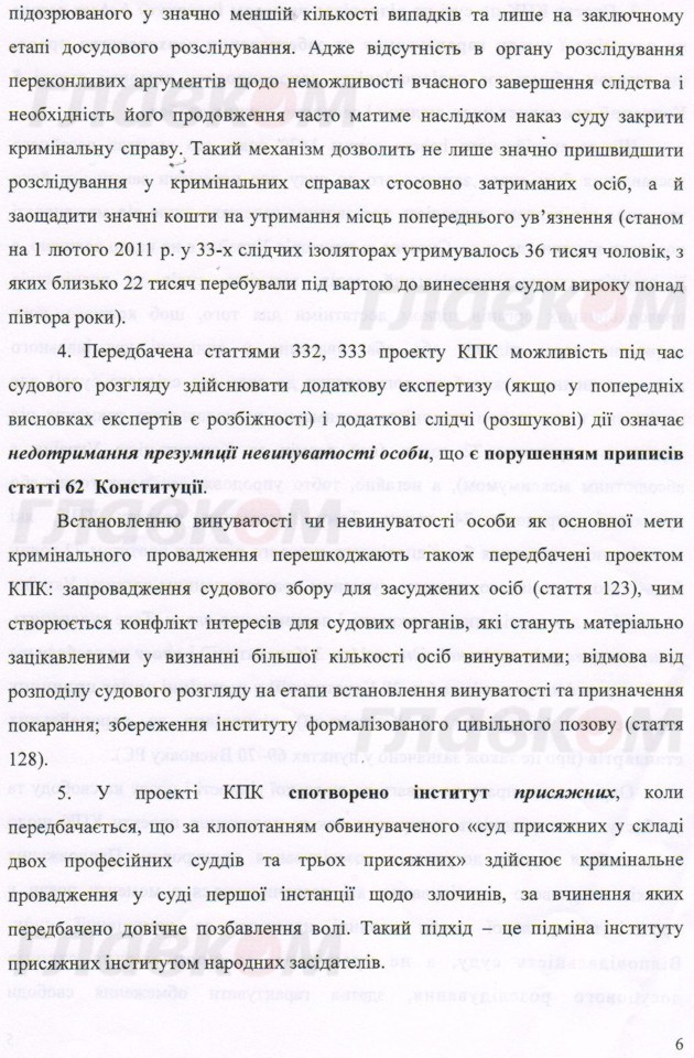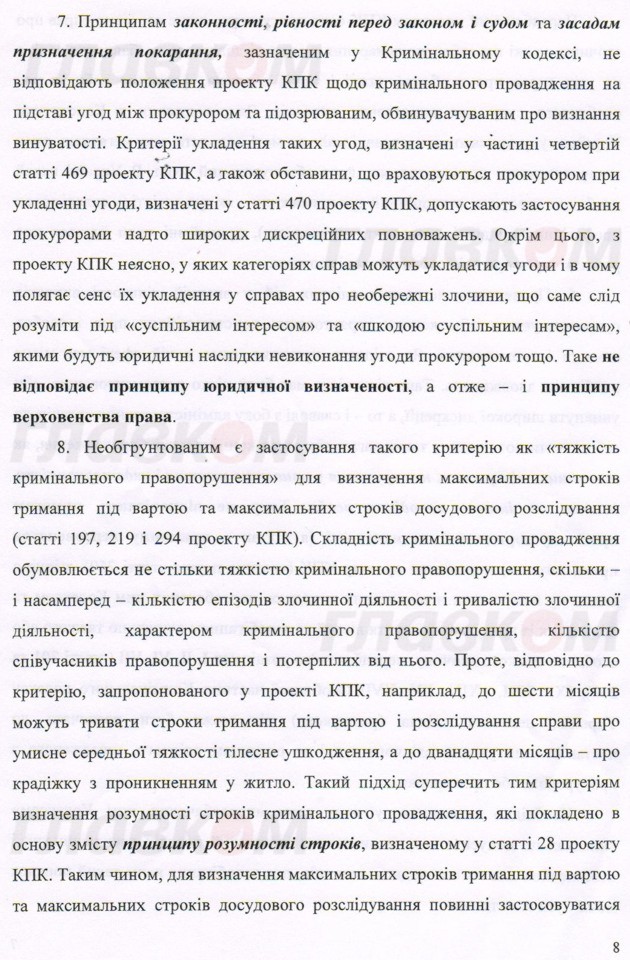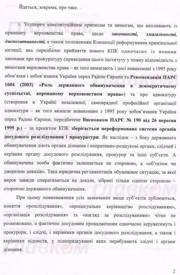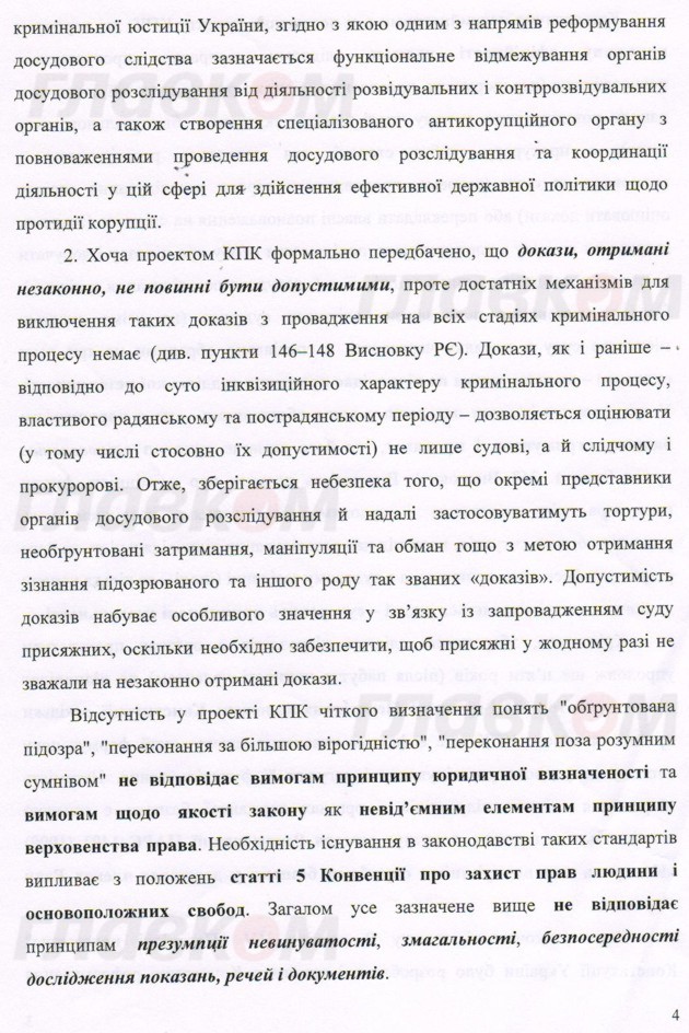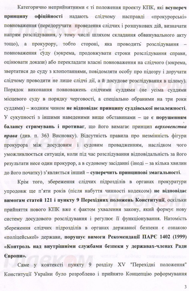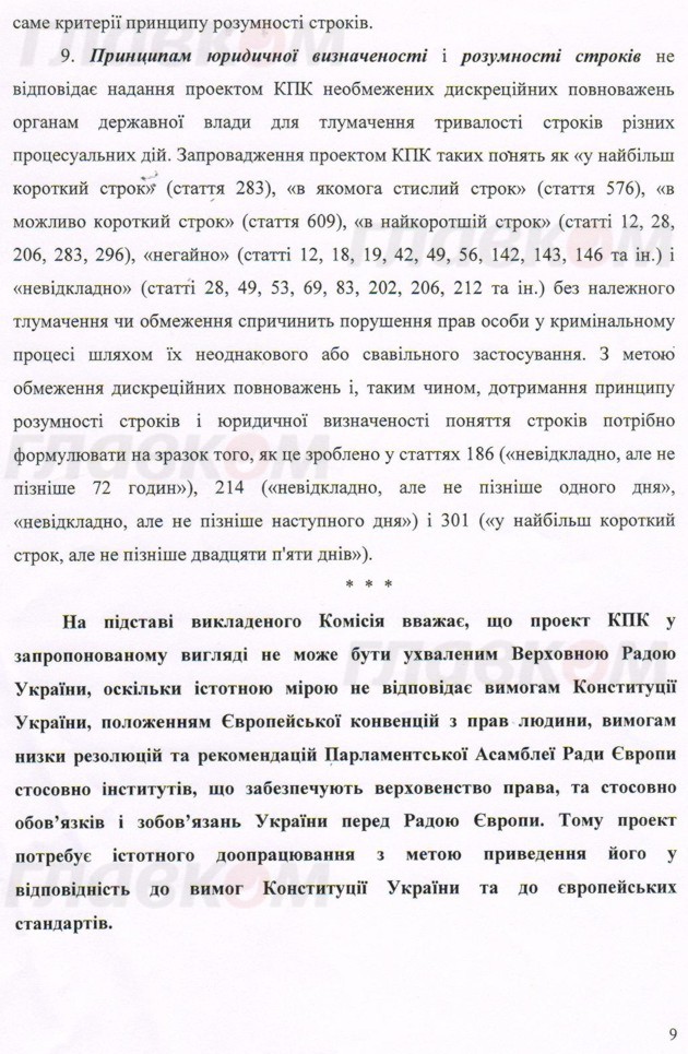 Сьогодні президентська Комісія зі зміцнення демократії та утвердження верховенства права на своєму засіданні розглянула проект висновку щодо проекту Кримінально-процесуального кодексу. Експерти Комісії вказали, що документ в багатьох положеннях суперечить Конституції України, Європейській конвенції з прав людини та низці резолюцій й рекомендацій Парламентської асамблеї Ради Європи. Нагадаємо, що документ поданий до Верховної Ради Віктором Януковичем, розглядався Радою Європи та був схвалений парламентом в першому читанні.