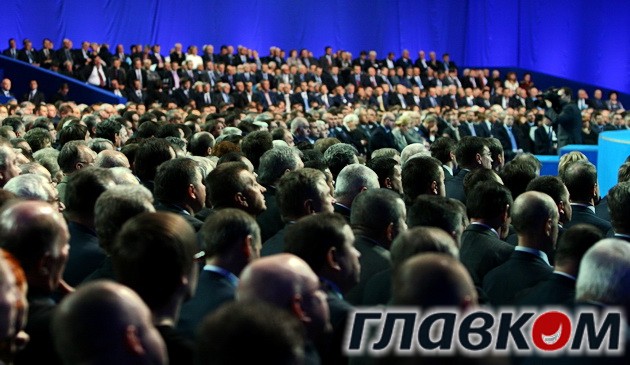 Дальше перемещаемся из холла в импровизированный зал съездов, огороженный ширмой. Кстати говоря, в отличие от предыдущего собрания регионалов в МВЦ, на сей раз журналистов не загоняли в отдельную резервацию, а пустили ко всем, ближе к телам.