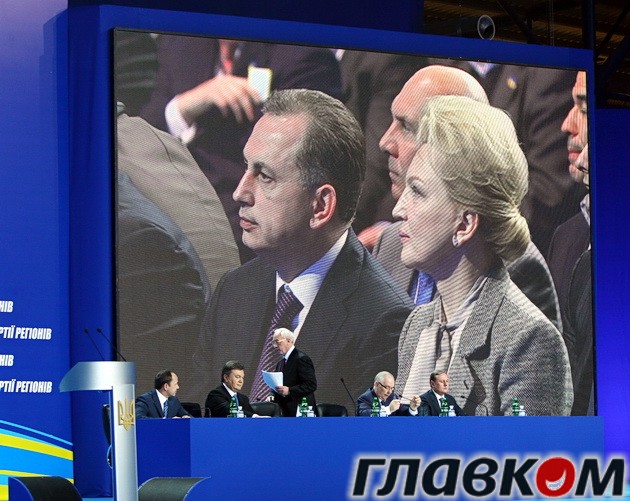 Около 12 часов вошли и главные действующие лица – Виктор Янукович и глава партии Николай Азаров. Не особо раскачиваясь, Азаров пригласил на сцену остальных членов президиума – Тигипко, Ефремова и Рыбака. При чем, Тигипко сразу же занял пост по правую руку от Президента.