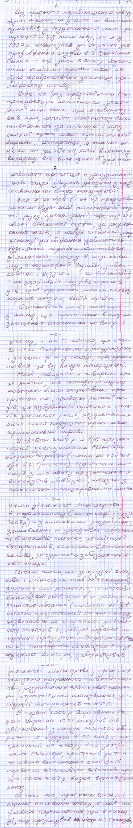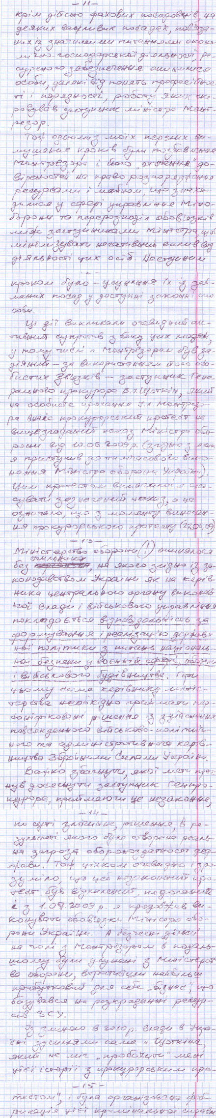 Своє завершальне слово колишньому т.в.о. міністра оборини Валерієві Іващенку довелося виголошувати у тісній кімнаті для конвою Печерського райсуду Києва, лежачи на ношах і не маючи, тепер уже жодних, ілюзій стосовно вирішення цієї справи. Довколо нього сиділи судді, прокурори, стояв у «стакані» (клітка для підсудних) інший обвинувачуваний у справі, захисники. Замкнені двері. Задуха.