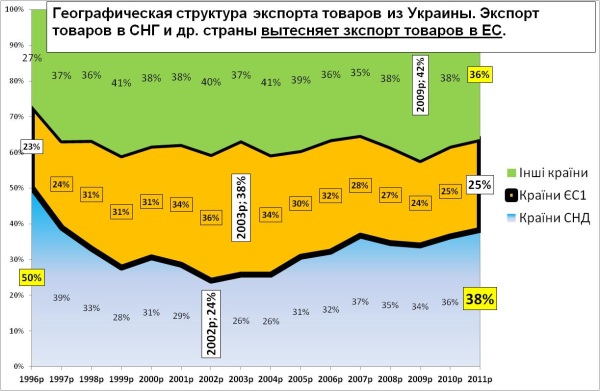 То есть, можно говорить, что наш украинский бизнес все больше и больше предпочитает развитие торговли товарами со странами СНГ развитию экспорта товаров в ЕС.