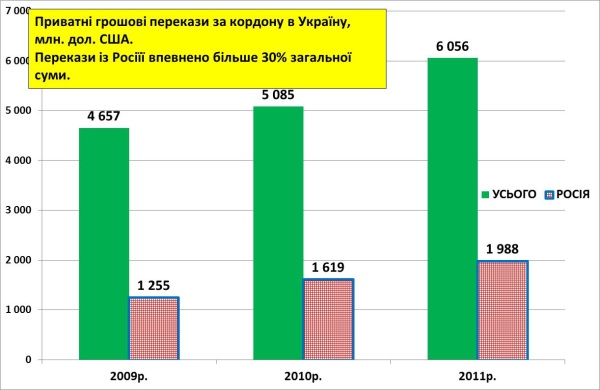 То есть, наши трудовые мигранты перевели в Украину сумму, которая примерно равна 8-10% всей заработной платы, которая была выплачена в Украине в 2011 г. Здорово! Спасибо закордонным работодателям! И резкая критика нашей власти!