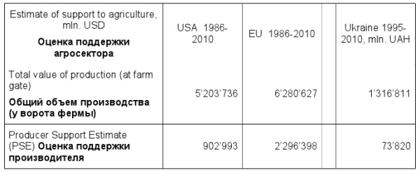 А именно, уровень поддержки производителя составляет там 37% к объему выпущенной продукции (почти 2300 млрд. дол. США). А у нас, в Украине, наши селяне получили... аж целых 6%... Знают ли об этом наши еврооптимисты???