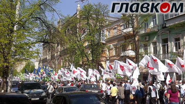 На четвертый день скандала вокруг «избиения Тимошенко» в Качановской колонии и блокирования парламента, объединенная оппозиция удосужилась провести уличную акцию протеста. В пятницу с утра силами «Батьківщини», «Фронта змін» і «Свободы» оппозиционерам удалось собрать около 3-4 тысяч человек.