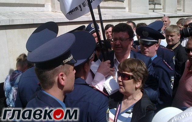 На подходах к АП стоял кордон милиции и небольшой заборчик, а людей пропускали через маленький двухметровых проход. Обычно там ходят туристы поглазеть на Дом с химерами. Десяток журналистов, Турчинов и еще пару депутатов без проблем прошли к Администрации Президента, но тут милиционеров явно укусила какая-то муха. Они вдруг перекрыли проход и попытались заблокировать депутатов-бютовцев Павловского, Ганущака и Одарченко, несущих «повестку». Те, достав депутатские удостоверения, потребовали пропустить, началась потасовка, вовремя которой Павловскому таки зарядили в лицо.