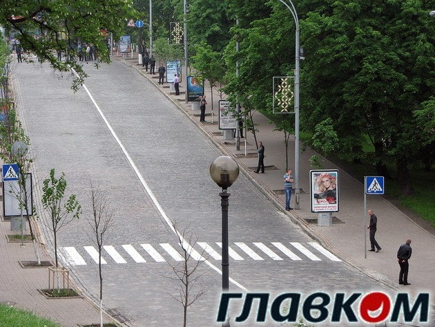 Уже в половину девятого утра станция выходы со станции Майдан Незалежности были перекрыты. Так что всем желающим посмотреть на праздничный концерт ко Дню Победы надо было переходить на метро Крещатик. Но и там ожидал сюрприз – на самом выходе стоял милицейский блокпост. Все возможные проходы на Майдан за километр по всему периметру были перекрыты железными ограждениями. Тяжело сказать, пускали ли в эту резервацию всех желающих, при нас проходили только группки специально свезенных на мероприятие людей.