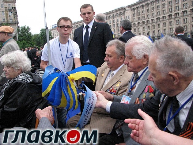 «Так, Васильков, собираемся и идем за мной», - собирала своих подопечный женщина лет 50 и проводила по списку через кордон милиции. Все личные вещи и сумки милиция тщательно обыскивала. На празднество собрали около 3-4 тысяч людей, преимущественно бюджетных работников из райцентров Киевской области. Были и организованные группы молодых людей, которых также по разнарядке отправили в столицу на День Победы. Очевидно, надежды на киевлян, которые бы пришли создать массовку, у власти не было.