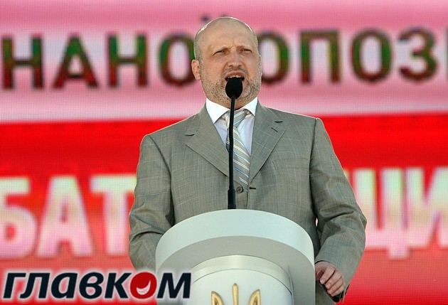 Но монополия Турчинова на сцене вскоре закончилась, и он вызвал на сцену глав партий, входящих в объединенную оппозицию, и представителей из регионов (с маленькой буквы).
