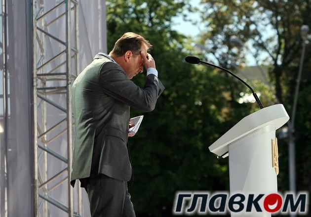 Разморившийся на солнце Олег Тягнибок в этот раз был необычно немногословен, а по примитивности сказанного мог бы конкурировать разве что с привычно блеклым Вячеславом Кириленко. В выступлении «свободовца» больше запомнилось, как он споткнулся, поднимаясь на сцену, но быстро отшутился: «Это все режим».