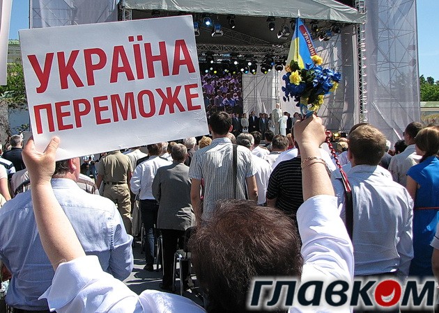 «Произволу бандитизма власти мы, оппозиция, противопоставили наше единение, – заскрежетал он своим фирменным «майданным» голосищем. – Перейдя через амбиции, через узкие партийные интересы, мы строим единый фронт борьбы, который победит и освободит Украину».