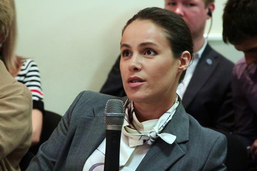 І, завершуючи дискусію, мені здається, що дуже важливою є позиція державних керівників, коли президент країни чи прем’єр-міністр дозволяють собі на міжнародних форумах виступати з явно дискримінаційними закликами і поясненнями. Ну, наприклад, президент Янукович, запрошуючи гостей на Євро-2012, говорить: приїжджайте, бо жінки в Україні влітку роздягаються, і це дуже гарно. Чи прем’єр-міністр Азаров твердить, що в нього немає жінок в уряді, бо вони не можуть робити реформ, чи міністр освіти України Дмитро Табачник говорить, що жінки не спроможні бути успішними у політиці. На мою думку, такі заяви суттєво впливають на формування громадської думки. І мені здається, що коли ви будете спілкуватися з очільниками нашої держави, то маєте теж чинити тиск на них за ті меседжі, які вони надсилають в українське суспільство. І запитання: я хотів би, щоб Ви більш детальніше розповіли про вплив гендерного балансу чи кількості жінок у верхніх ешелонах політики на її якість. О, це дуже важливе питання. Дякую.