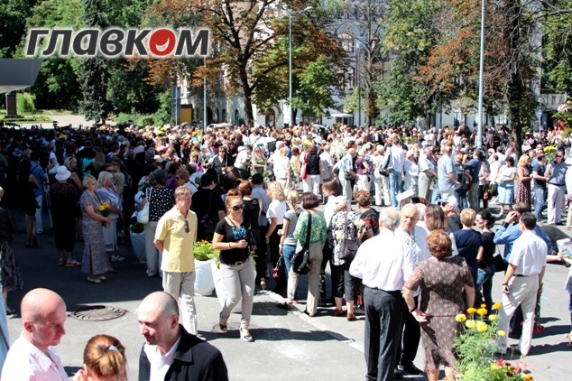 В 10 часов утра перед театром уже собралось около пяти тысяч человек, к 12 дня площадь Франко была практически заполнена, а желающие попрощаться с Богданом Ступкой все приходили и приходили.