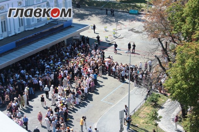 Президент, министры и прочие высшие чиновники заходили в здание и выходили из театра без очереди, через служебный вход, подступы к которому были ограждены и охранялись УДО. Все это время через центральный вход простых людей практически не пускали, лишь избранным удавалось просочиться через «выход». Ближе к 11 часам утра, когда Виктор Янукович, министры и чиновники попрощались со Ступкой, людей начали свободно пропускать через центральный вход и очередь начала двигаться. До сих пор тысячи людей все еще стоят на площади, в надежде попрощаться с кумиром.