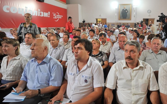 «Угнетенное и эксплуатируемое большинство народа Украины спасет от олигархического наступления только левый поворот в массовом сознании», – и сидящий в заднем ряду глава Государственной таможенной службы Игорь Калетник в последний раз поднимает взгляд в сторону сцены и окончательно уходит в свой смартфон. «За два с лишним десятилетия т. н. независимости, хлебнув вдоволь “прелестей” капитализма, люди все больше задумываются: что же они приобрели и что утратили в результате ликвидации Советской власти, разрушения социалистических устоев, что дал им капиталистический строй, с реставрацией которого они в большинстве своем тогда молчаливо согласились?» – ни разу не сбившись, читает трехэтажное предложение Симоненко, и нить спича утрачивает, кажется, даже аксакал Коммунистической партии Георгий Крючков.