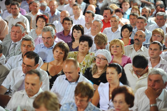 Через час этой толчеи начинают пускать в зал. Большинство только что прибывших из Верховной Рады народных депутатов сидят в задних рядах. Их дорогие костюмы кричаще диссонируют с песочными штанами и светлыми рубашками, а айфоны на фоне недорогих монохромных мобилок выглядят приветом из следующего века. В котором, судя по всему, уже построен коммунизм.