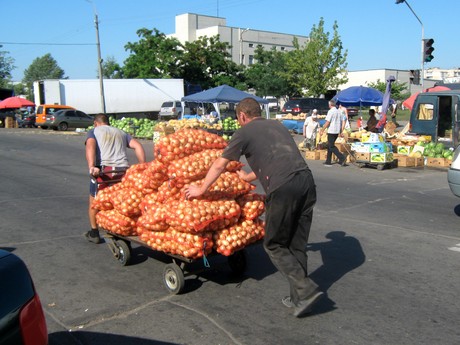 «Фермер», напоминающий своей многолюдностью и галдежом восточный базар, на месте, а оптовая его часть значительно расширилась. Буквально на наших глазах мелкие оптовики «разметают» огромные фуры с луком, картофелем, перцем. На вопрос, за сколько часов продастся машина картофеля, хлопцы из Одессы отвечают вопросом: «Где твой картофель? Продадим за 2 часа».