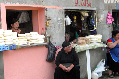 Бывшая индустриальная и «воровская» столица пережила не лучшие времена. После развала Союза промышленности практически не осталось. Работы — тоже. Каждый выживал, как мог. Да и сегодня Кутаиси, едва выйдешь из отреставрированной части центра города, поражает бедностью. Обшарпанные пятиэтажки советской архитектуры — далеко не худшее жилье. Лачуги, прилепившиеся к берегу реки Риони, весьма живописны, их хочется рисовать и фотографировать, но совершенно невозможно представить, как в них кто-то может жить. На улочке рядом с одной из центральных площадей — разгар стихийной торговли. У нас тоже торгуют всякой всячиной, но такого мотлоха я давно не видела. Колоритные, пожилые грузинки, все в черном в невыносимую жару, практически с асфальта продают головки домашней брынзы. Власти их не трогают: людям нужно за что-то жить. Наша украинская речь обращает внимание грузина преклонного возраста, он останавливает и напутствует нас: «Я слышал, у вас хотят отнять украинский язык, боритесь за него, это очень важно». На вопрос «А как живется нынче в Грузии?» со вздохом отвечает: «Тяжело. Но мы верим, что у нас есть перспектива».