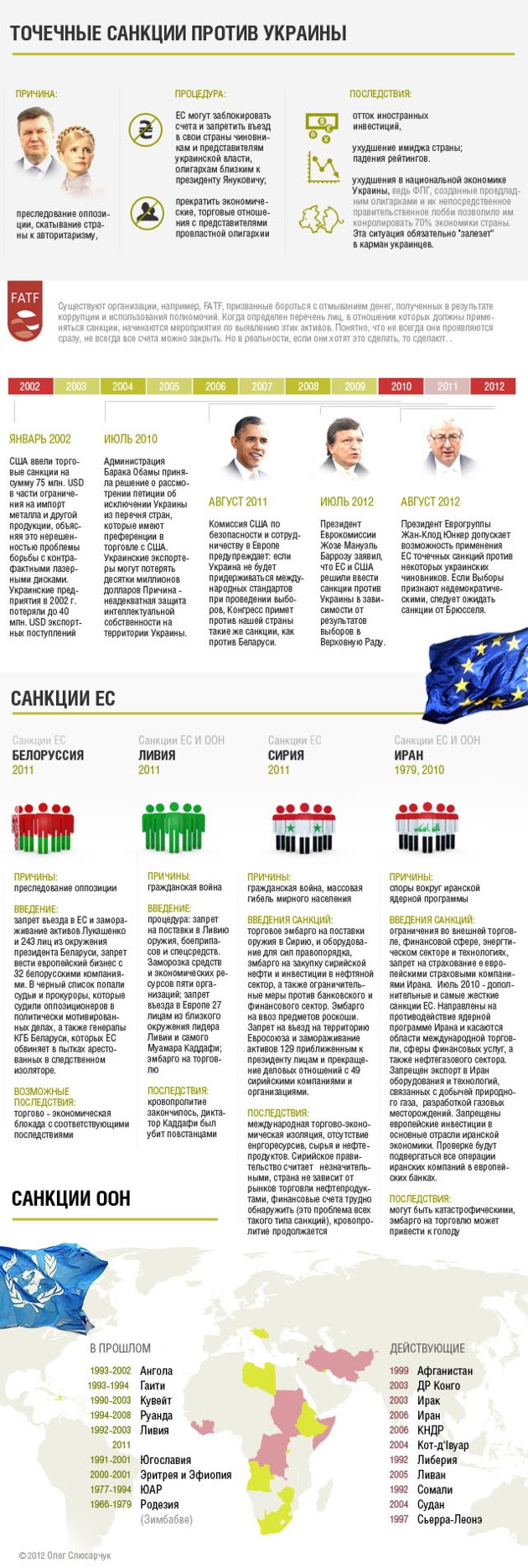 Как стало известно ранее, в комитете иностранных дел Конгресса США за авторством сенатора Джеймса Инхофа готовится проект резолюции, призывающей ввести санкции против представителей действующей украинской власти. В резолюции предлагается запретить выдачу виз президенту Виктору Януковичу, генпрокурору Виктору Пшонке и чиновникам, которые имеют отношение к заключению оппозиционерки. Авторы проекта резолюции предлагают обязать посла США в Украине приостановить всю деятельность в посольстве и призвать ОБСЕ не признавать запланированное на 2013 г. председательство Украины в этой организации до освобождения Юлии Тимошенко. Кроме того, НАТО предлагается приостановить действие всех соглашений о сотрудничестве с Украиной и предоставить Киеву испытательный срок в связи с особым партнерством с организацией до момента освобождения экс-премьера.