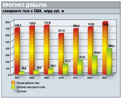 В целом доля сланцевого газа в общемировой добыче природного газа вырастет до половины всего объема, составив к 2035 году 13,6 трлн куб. м, уверены в EIA.