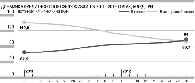 Запрет на выдачу валютных кредитов населению, введенный в июне 2009 года, оказал положительное влияние на банковскую систему. В сентябре впервые как минимум за восемь лет объем розничных гривневых кредитов превысил валютную задолженность клиентов, которая продолжает сокращаться. Банкиры уверены в сохранении этого тренда в 2012-2013 годах, поскольку валютное кредитование населения если и возобновится, то нескоро. Ведь никто не хочет повторения кризиса 2008 года, отмечают банкиры.