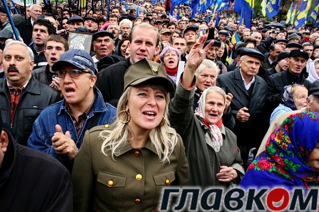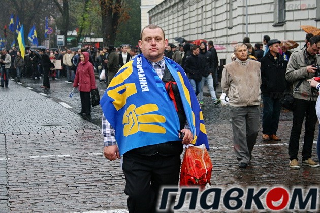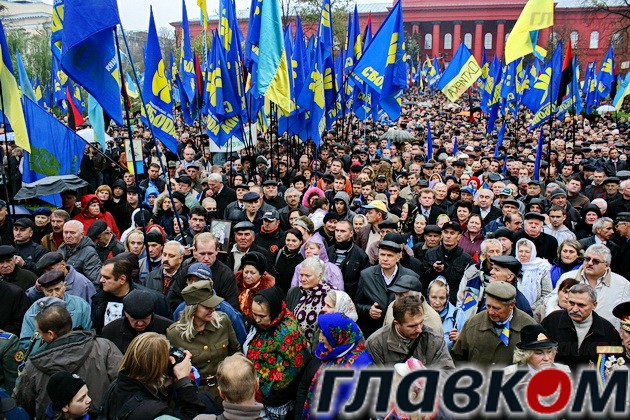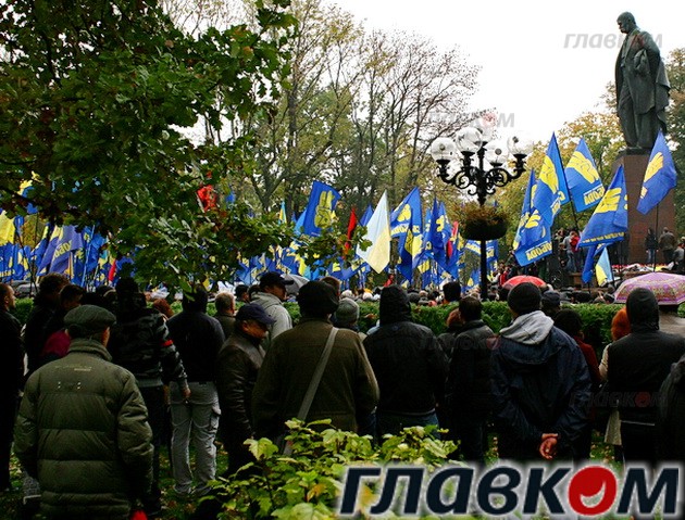 А в это время верхушка «Свободы» у подножия памятника Тараса Шевченко толкала пламенные речи. Они ложились на благодатную почву – постамент кобзарю окружили воинственно настроенные приверженцы партии Олега Тягнибока. Сам лидер говорил красиво и пламенно. Казалось, еще немного, и он поведет всех на штурм. Правда, кого штурмовать, никто так до конца и не понимал…