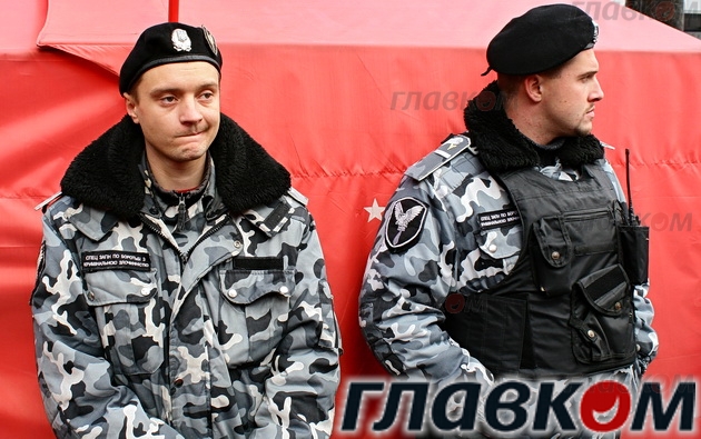 Возле памятника Ленину скопилось немало народу, при этом его охраняли бойцы с нашивками некого «Спецзагона з боротьби з кримінальною злочинністю». Эти ребята несут здесь постоянное дежурство уже три года - после попытки разбить изваяние Владимира Ильича.