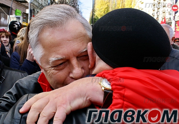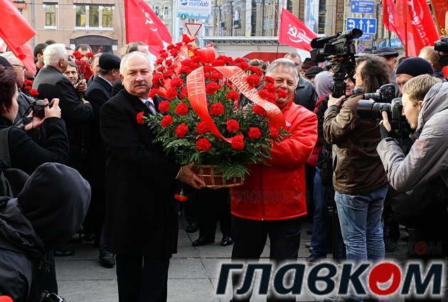 Тем временем возле Ленина появился лидер Компартии Петр Симоненко. Он пообщался с журналистами и подошел к памятнику. В этот момент сотни милиционеров перекрыли проезд автомобилей к площади со стороны Крещатика, Красноармейской и бульвара Тараса Шевченко. Пока Петр Николаевич возлагал цветы Владимиру Ильичу, к устроенной на проезжей части сцене подошли около полтысячи молодых людей ПТУшного вида. Через пару минут туда же подтянулись бабушки.