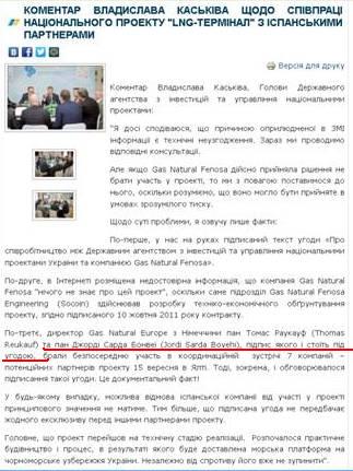 Поэтому совершенно не понятно, почему пресс-служба Кабинета министров распространила информацию о том, что с испанской стороны документ подписал Jordi Garcia Tabernero, генеральный директор по внешним связям Gas Natural Fenosa.