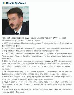 Более того, если речь идет о широко разрекламированной энергетической безопасности страны, встает вопрос в профпригодности украинских спецслужб. И здесь нельзя не вспомнить о тесной связи куратора нацпроекта «LNG-терминал» Виталия Демьянюка с Россией. Так, в 1995-м он закончил один российский ВУЗ – Московский государственный инженерно-физический институт, а в 1998-м – второй, МГУ им.Ломоносова. С 2000 по 2010 годы работал на руководящих должностях в ОАО «Красноярская угольная компания», ООО «Русская управляющая компания», АО «Российские коммунальные системы», а также в ряде газораспределительных компаний.