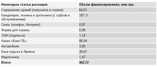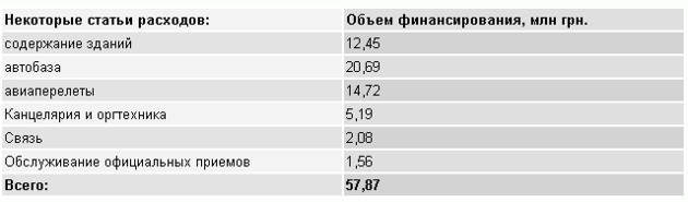 Все расходы хозфиндепартамента Кабмина, управления админзданиями и правительственной автобазы обошлись в сумму, сопоставимую с расходами на содержание клерков Администрации президента и Госуправления делами. Однако 50 млн грн президентских расходов не включали в себя тендеры автобазы, представительские расходы и закупку продуктов питания. Как известно, в здании правительства несколько лет назад открыла платную столовую одна из сетей быстрого питания.
