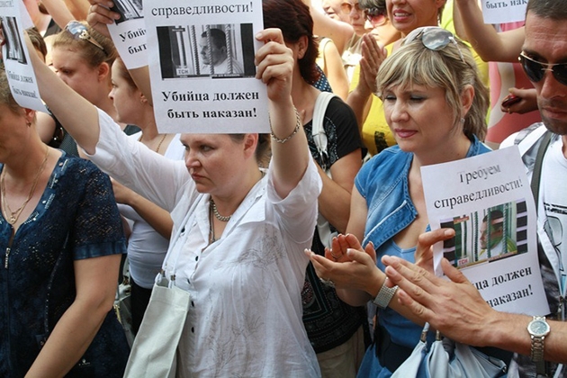 На акцию протеста против Давыдова вышли толпы людей, потребовавшие от властей справедливого наказания для преступника. Собравшиеся держали в руках распечатанные на принтере фотографии Давыдова с подписью «Преступник должен быть наказан». Перед телекамерами и объективами фотоаппаратов было сожжено чучело убийцы. Отец убитой, выступавший на митинге, призвал народ сплотиться и выступить «единой громадой» против произвола, от которого в любой момент может пострадать каждый гражданин.