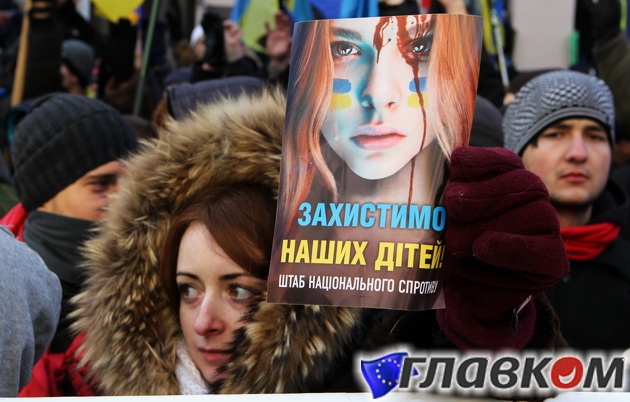 Один з учасників акції розмахував закривавленим прапором. «Це наша кров, що пролилася позавчора на Банковій», - сказав він «Главкому».