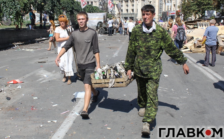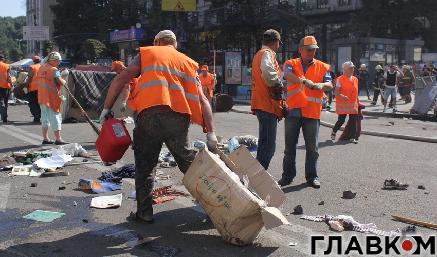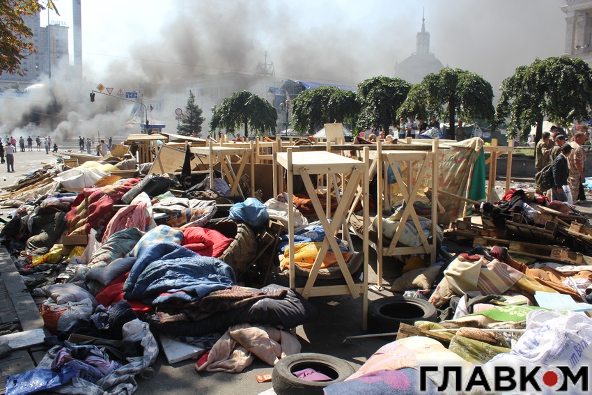 С чем связана необходимость зачистки Майдана и присутствие при этом вооруженных правоохранителей, стороны объясняют сумбурно. Первые утверждают, что получили такой приказ, и выполняют его, «чтобы убрать грязь». Майдановцы же уверены, что уборка палаточного городка – намерение подготовить центр Киева к запланированному параду на День Независимости 24 августа, «который в условиях войны нецелесообразен».
