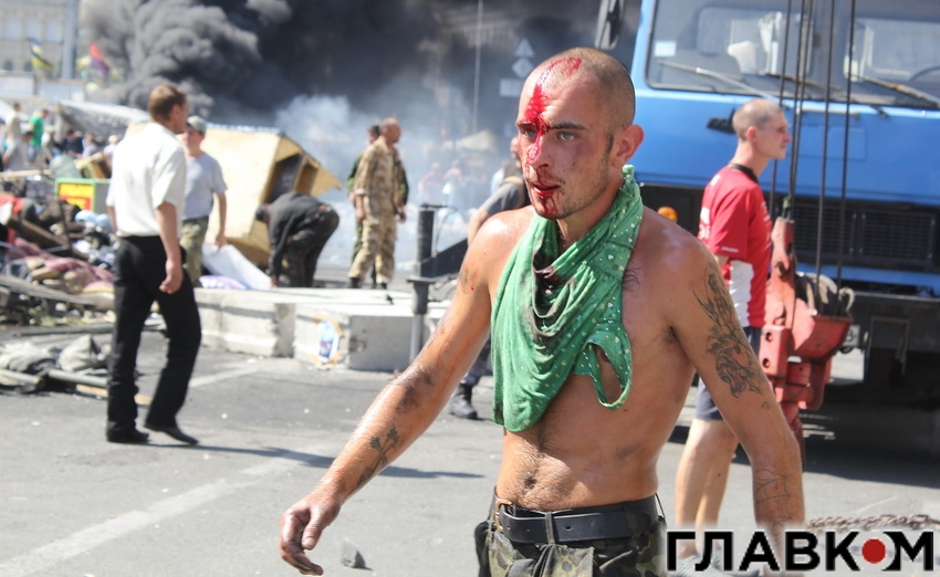 Но правоохранителиям так и не удалось убедить майдановцев. Они начали жечь автомобильные покрышки и кидать камни в милиционеров. Протестующие оттеснили представителей городских служб с Крещатика на улицу Михайловскую и в сторону Бессарабского рынка.