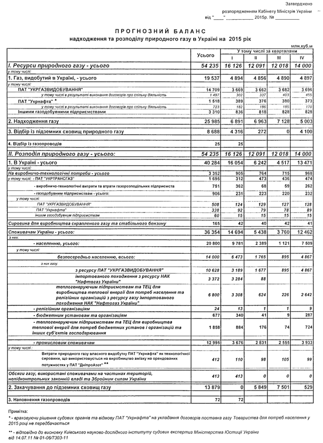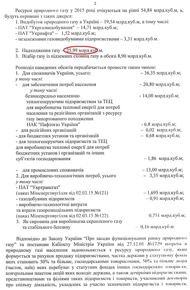 В розпорядженні «Главкому» є поки що не затверджений Кабміном проект «Про затвердження прогнозного балансу надходження та розподілу природного газу в Україні на 2015 рік». В документі, зокрема, ідеться про необхідність імпорту близько 26 млрд куб. м газу і власного видобутку близько 20 млрд куб. газу. За словами деяких експертів, реверсу поки що недостатньо, щоб зіскочити з російської газової голки вже тепер. Саме тому «Нафтогаз» змушений укладати новий контракт із російським монополістом, який може виявитися міною уповільненої дії.