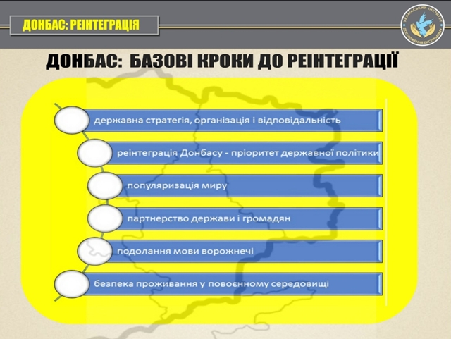 Науковці наголошують - питання реінтеграції Донбасу має стати пріоритетом державної політики. Перш за все має бути створена Стратегія для розвитку звільнених територій органи, що відповідатимуть за це. Має проводитись системна інформаційні політика, спрямована на популяризацію єдності нації. Наступний крок - створення особливого економічного режиму на території деокупованих районів Донецької і Луганської областей, який би сприяв розвитку підприємництва; відновленню житлового фонду та інфраструктури Донбасу; надавав пріоритетність у вирішенні проблем людей, в тому числі пересування, доступу до медичного, освітнього, культурного середовища.