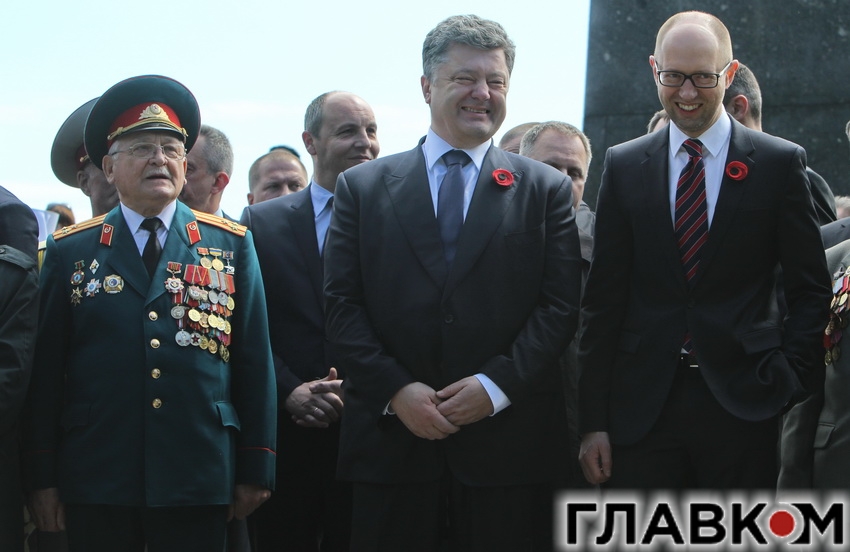 После этого возлагать цветы к огню потянулись и все остальные. С Порошенко, пользуясь случаем, попытался поговорить нардеп от его же блока Сергей Куницын, да и другие политики также пытались использовать этот шанс. Но, в итоге, Порошенко подозвал к себе Яценюка и оба даже развеселились – День победы все-таки. А заодно продемонстрировали единство своей коалиции.