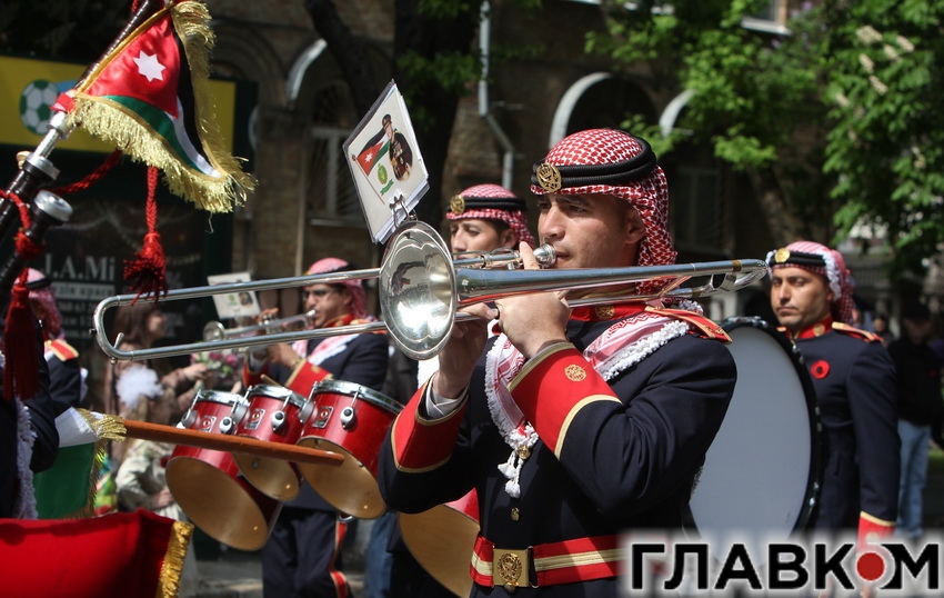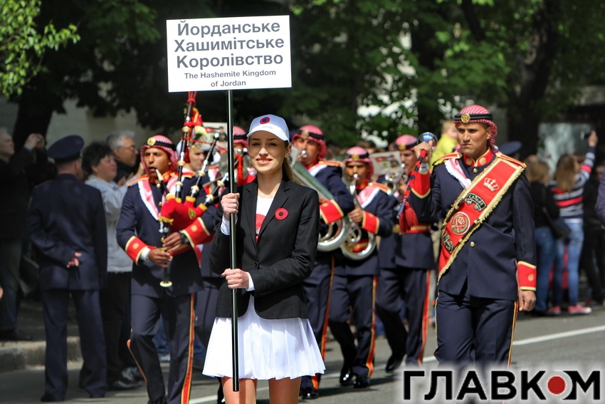 Тем временем начался запланированный парад оркестров – улицей Мазепы прошли оркестры из Украины, Польши, Сербии, Литвы, Эстонии, Иордании. Самым экономным оказался британский десант музыкантов: он состоял из одного музыканта в кильте и с волынкой. Хоть шотландцы и считаются злостными сепаратистами у себя на родине, именно их представителю довелось праздновать с нами День победы от лица Королевства.