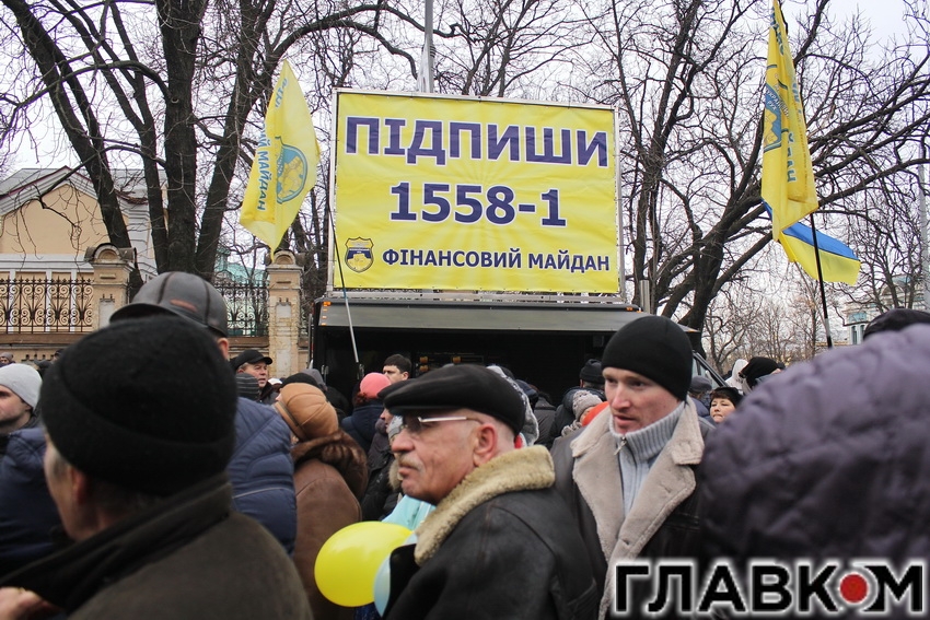 Проте уранці цього ж дня великі групи людей-позичальників, які входять до так званого «Фінансового майдану», вишукувалися біля проходу до Адміністрації Президента з вимогами до гаранта якнайшвидше підписати цей закон. А потім почали з гудками та гаслами ходити вулицями урядового кварталу.