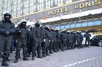 Через полчаса после открытия к гостинице начинают сходится молодые парни и девушки. На вид по 16-18 лет, одеты в спортивную одежду и кроссовки. Постепенно под входом в гостиницу собирается около трех сотен людей. На вопрос о том, кого они представляют, все дружно отвечают, что просто пришли сюда погулять. Балаклавы надели, чтобы не было холодно.