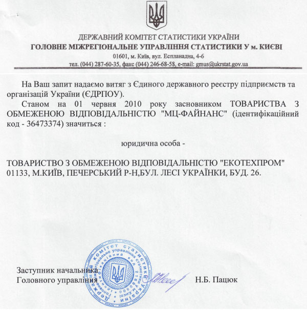Назва згаданої фірми - «МЦ - Файнанс».