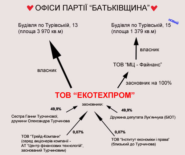 Тобто всі активи з нерухомості партії «Батьківщина» значаться на фірмі, акціонерами якої є родичі Турчинова і Лук\'янчука.