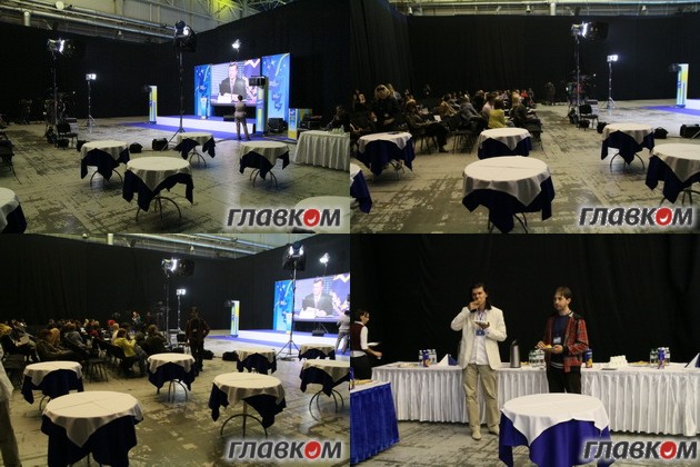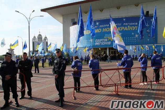 Атмосфера вокруг МВЦ соответствовала уровню собрания – дорожное движение в районе метро «Левобережная» было практически парализовано, а милиция устроила проверку документов далеко на подступах к выставочному центру. При чем, если у журналистов долго и усердно проверяли удостоверения, то когда парни спортивной внешности говорили «на митинг», правоохранители безусловно пропускали их дальше. Огромный павильон МВЦ был украшен масштабными растяжками с лозунгами избирательной кампании Партии регионов - «Строим новую страну». Для создания массовки под МВЦ свезли несколько сотен студентов, которые, держа флаги Партии регионов, устроили живые коридоры для пребывающих гостей собрания. А прямо перед входом в выставочный павильон даже соорудили сцену: «Так и концерт будет?», - задавались вопросом пребывающие гости.