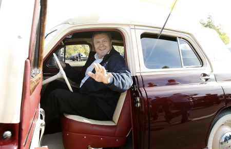 Дальше президенты идут осматривать выставку раритетных машин: «Астон Мартинов», «Студебекеров» и прочих красоток. За ними катится волна возгласов: «А! Янукович! Это он! А? Та вон рукав!» Медведева из-за низкого роста разглядеть удается немногим. 50-летние дамы не хуже девочек на концерте «Иванушек International» вздыхают по своим кумирам.