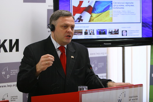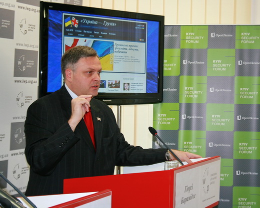 Особливий гість - це пан Гіоргі Барамідзе, віце-прем’єр міністр та державний міністр з питань європейської та євроатлантичної інтеграції Грузії. Особлива нагода, тому що сьогодні ми, Інститут світової політики, запускаємо тематичну панель «Україна-Грузія», і ви можете побачити на нашому екрані, як виглядає веб-сайт, де будуть акумулюватись статті, новини, публікації, які зв’язані з Україною та Грузією. Я думаю багато хто з експертів, які тут сьогодні присутні, також зможуть знайти свої матеріали, статті, коментарі на нашому сайті. Мови веб-сайту - поки що лише українська та англійська, але ми сподіваємося в подальшому і на грузинський переклад.