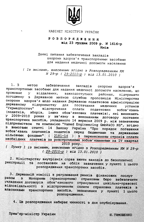 Приблизно через місяць державне підприємство «Укрмедостач», що підпорядковується Міністерству охорони здоров’я, уклало договір з австрійською компанією «Vamed Engineering Gmbh & CO KG». Предметом договору стала купівля 1000 (!) автомобілів «Opel Combo» в якості спеціальних медичних транспортних засобів.